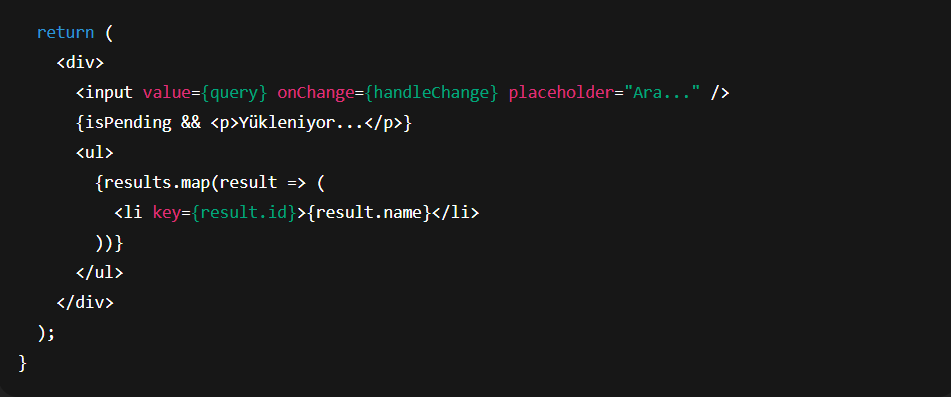 Concurrent Mode, React 19’da en dikkat çeken özelliklerden biri. Bu mod sayesinde UI güncellemeleri daha akıcı hale gelir ve kullanıcı etkileşimleri arka plandaki işlemlerden etkilenmez.