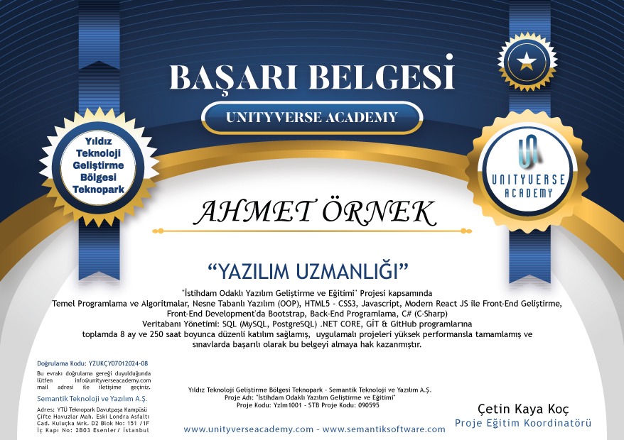 - Unityverse Academy Başarı Sertifikası (Ücretli)